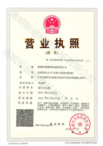 山东钜盛精密机械有限公司成立于2003年,位于诸城市开发区,占地190亩,总投资7.8亿。山东钜盛是以生产农业机械、轨道列车、工程机械和发动机的零部件为主的股份制企业,其中轨道传动箱体和日立挖掘转向架等出口产品实现铸造及精加工,并且出口量逐年增加;四(六)缸发动机缸体缸盖、后桥壳体和变速箱壳体等产品的技术成熟且已长期供货。公司铸造事业部下设铸造一厂和铸造二厂,加工事业部包括普通加工厂和精密加工厂。